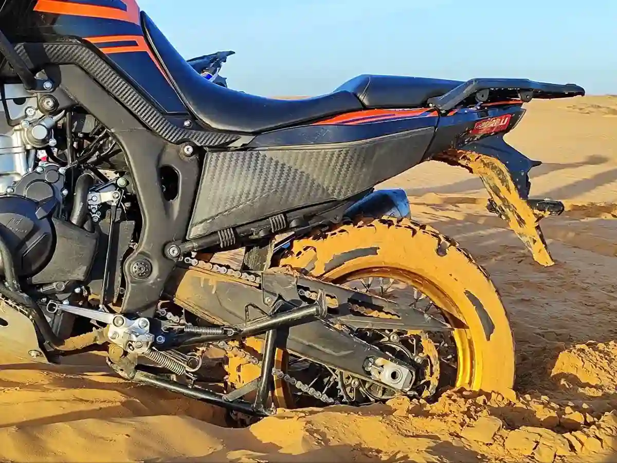 У байка — два топливных бака общим объемом 39 литров, что обеспечивает «дальнобойность» под 900 км. Правда, этот показатель во многом зависит от стиля вождения, но даже если гнать по грунтовкам с предельной скоростью, такой запас топлива все же вселяет уверенность, что вы не останетесь в степи с обсохшим баком.