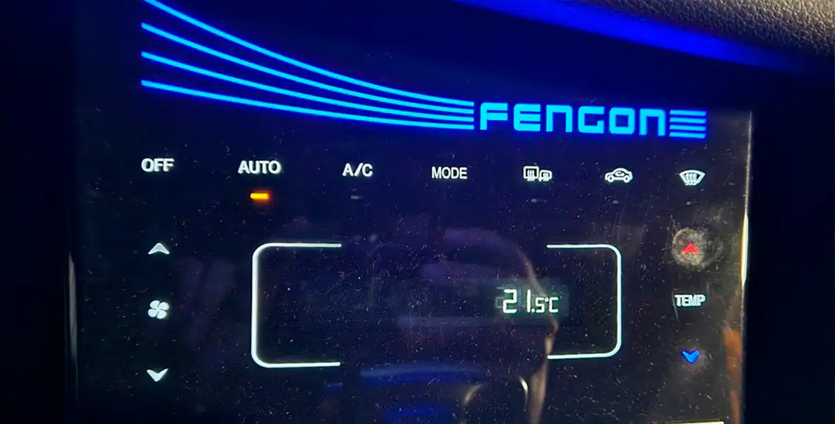 Плюс на этой панели очень выделяется синяя подсветка надписи Fengon, что особенно заметно вечером. К слову, этих самых надписей в салоне немало, например, они есть на руле и передней панели. При этом сам климат, по меркам китайских машин, работает крайне адекватно. При температуре в минус 16 на улице в салоне было стабильно тепло. Никаких запотеваний, резких перепадов температуры или неожиданных потоков холодного воздуха. Даже в морозы прогревается автомобиль быстро.