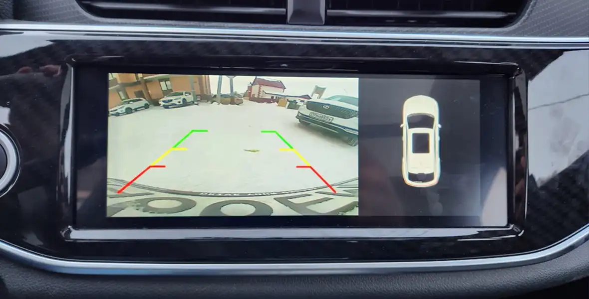 Мультимедийная система выглядит просто, хотя сенсорный экран (10,25 дюйма) реагирует на нажатия шустро, без задержек и подвисаний. Количество настроек и опций тут заметно меньше, чем в том же ix7. Штатная музыка звучит прилично, а возможность отзеркалить экран смартфона сохранена (приложение CarAuto). Картинка с камеры заднего вида простенькая, но вечером читаемость остается на хорошем уровне.