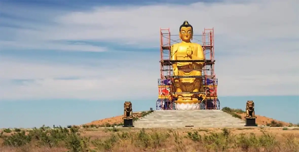 Прибываю в городок Лагань, к воротам хурула, буддийского храма. Смотрители торопятся навстречу — оказалось, ждут некоего Чингиза освящать его автомобиль. Рядом огроменная статуя Будды. И вспоминается знаменитая притча.
