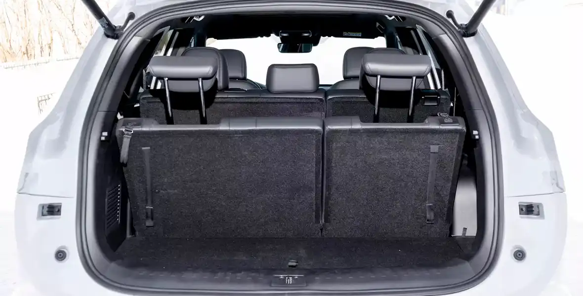 На втором ряду — вполне вольготно. Плюс имеются продольная регулировка, изменяемый угол наклона спинок, вместительные подстаканники, зарядные разъёмы, а на закуску — регулировка скорости вентилятора отопителя. Кстати, важный момент: машина имеет систему полного привода, но центральный тоннель отличается минимальной высотой.