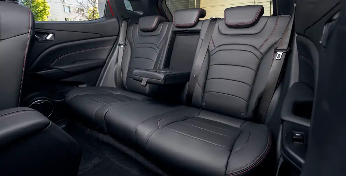 Салон вроде бы простенький. Но с некоторыми претензиями. В его оформлении, оснащении чувствуется желание разработчиков предоставить владельцу все необходимое, отказавшись от того, без чего можно обойтись. Так, жесткий пластик мирно соседствует с мягкими накладками, и опять же есть яркие акценты в отделке. Черно-красная обивка сидений, черный потолок и красная отстрочка придают салону этакий спортивно-молодежный характер. И руль здесь модный, со срезанным нижним сегментом. Он обтянут приятной на ощупь перфорированной экокожей, но регулируется только по углу наклона. Привычной для «китайца» панорамной крыши (и даже люка) нет. Да и надо ли?