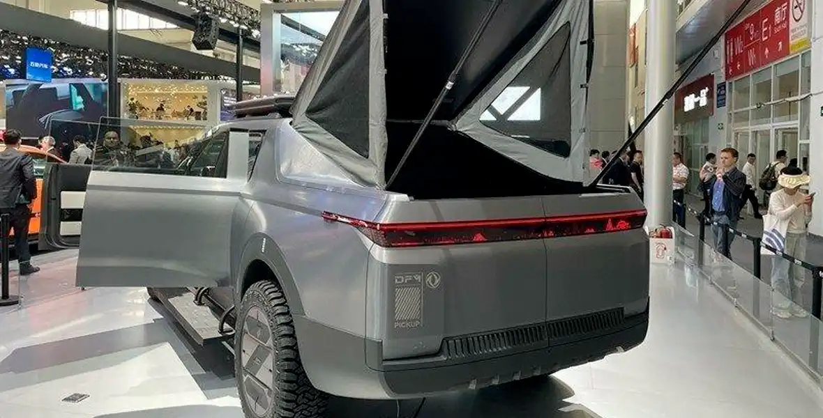 Новинку назвали на удивление безлико: просто DFM Pickup. Даже как-то обидно за автомобиль. Зато на демонстрационном пикапе сразу установлен раскладной тент, превращающий кузов в жилой модуль, а машину — в дом на колесах. Подобные конструкции силами тюнинговых ателье выпускаются и для Cybertruck, но стоят они как минимум пару десятков тысяч долларов.